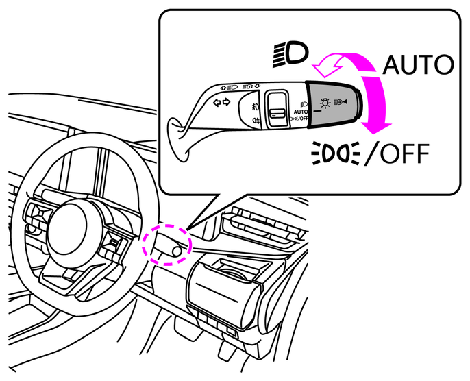 ライトスイッチを回すと、アドバンスドドライブアシストディスプレイにライトモードガイダンスが表示されます。
