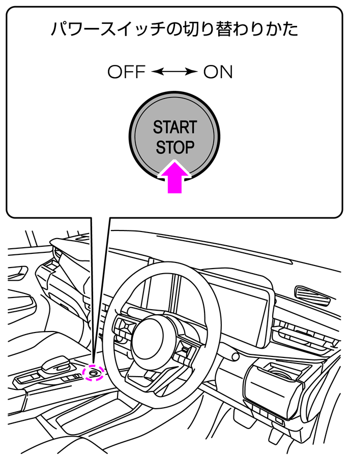 e-POWERシステムが始動中にパワースイッチを押すと、e-POWERシステムが停止します。
