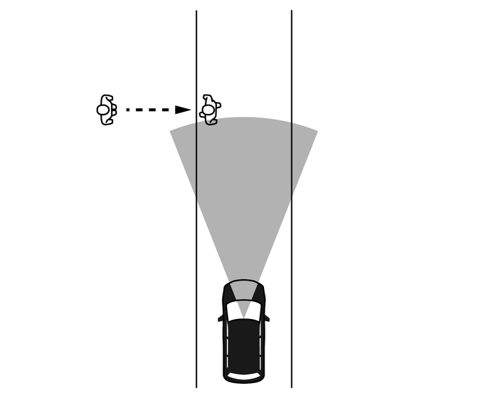 マルチセンシングフロントカメラで検出した衝突のおそれのある前方の車両や歩行者に対して作動します。