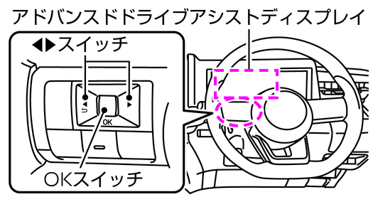 スイッチを押すと走行した距離をリセットできます。(「---km /---km」の左側の表示)