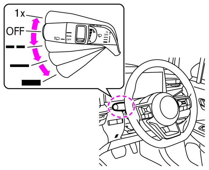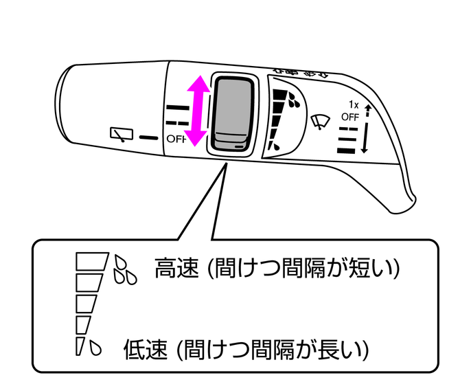 間けつで作動します。 スイッチを回し、ワイパーの間けつ時間を調節します。 |