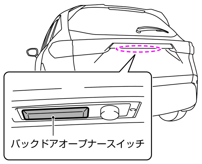 解錠されているときは、バックドアオープナースイッチを押し、バックドアを持ち上げます。