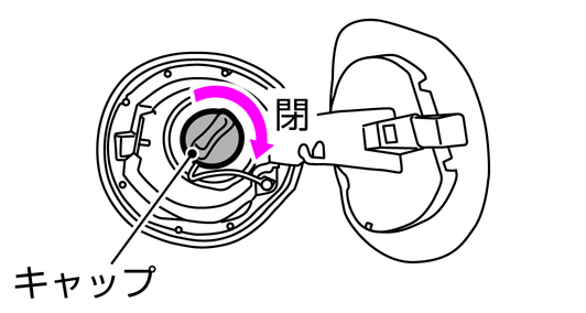 閉まっていないと走行中に燃料が漏れ、火災につながるおそれがあります。