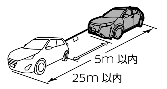 けん引中はロープをたるませないように、前の車の制動灯に注意してください。