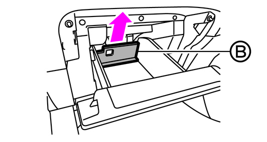 グローブボックスを開け、内側のプレート(A)にある取っ手を手前に引きプレート(A)を外します。