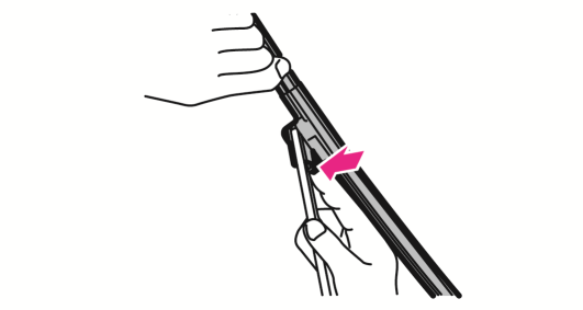 ワイパーブレードを矢印の方向に動かして取り外します。