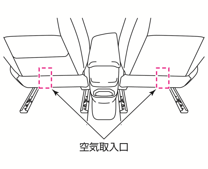 前席シート下にリチウムイオンバッテリーを冷却するための空気取入口があります。