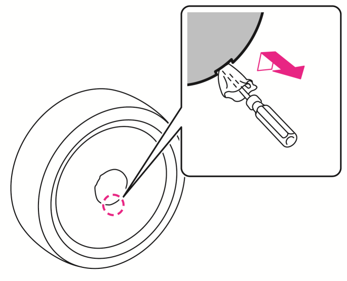 先の細いお手持ちの工具を布などで覆い、センターキャップの溝に差し込んでセンターキャップを外します。