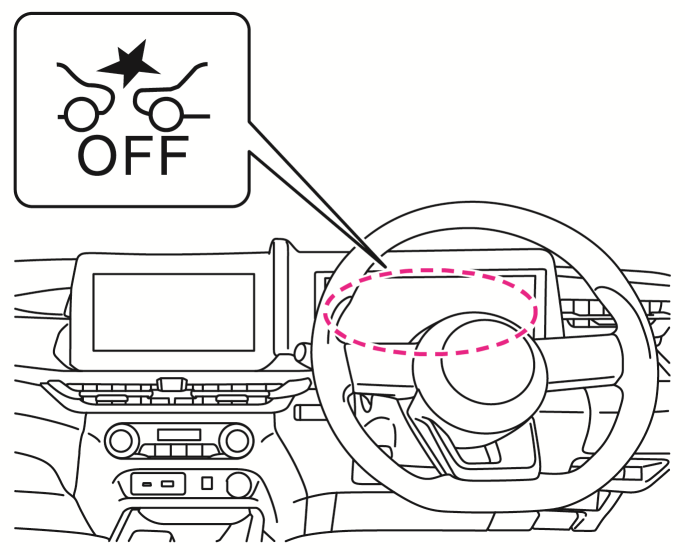インテリジェント エマージェンシーブレーキをOFFにすると、踏み間違い衝突防止アシスト、インテリジェント FCW(前方衝突予測警報)も連動してOFFになります。