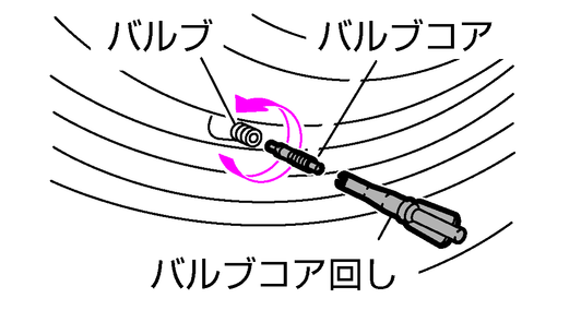 バルブコア回しでバルブコアを回し、取り外します。