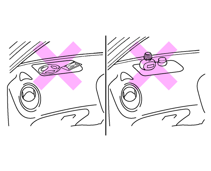 SRSエアバッグ格納部およびその周辺にステッカーなどを貼らない。また、アクセサリーや芳香剤などを置かない。