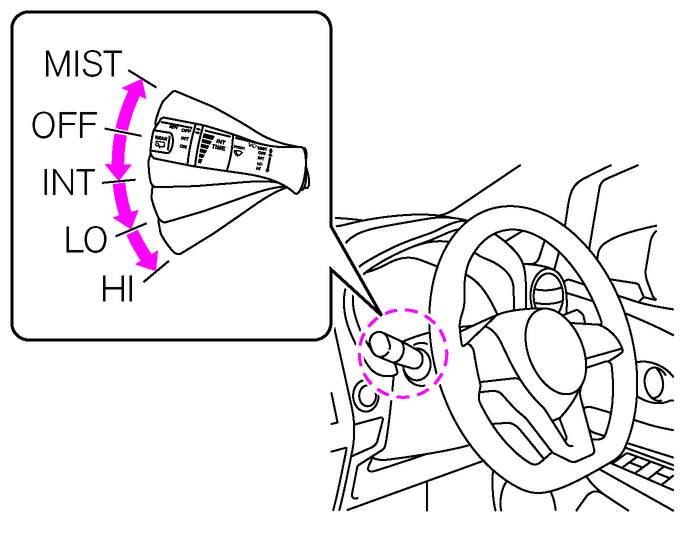 間けつで作動します。 スイッチを回し、ワイパーの間けつ時間を調節します。 |