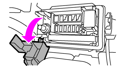 自車のヒューズボックス内のカバーをツメを押しながら開けます。