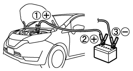 e-POWERシステムが始動したら、ブースターケーブルをつないだときと逆の手順で外します。
