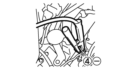 手順7で接続したケーブルの反対側(4)を右記のような自車の車体(手順5で接続した位置から離れた未塗装の金属部)に接続します。