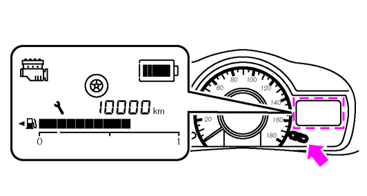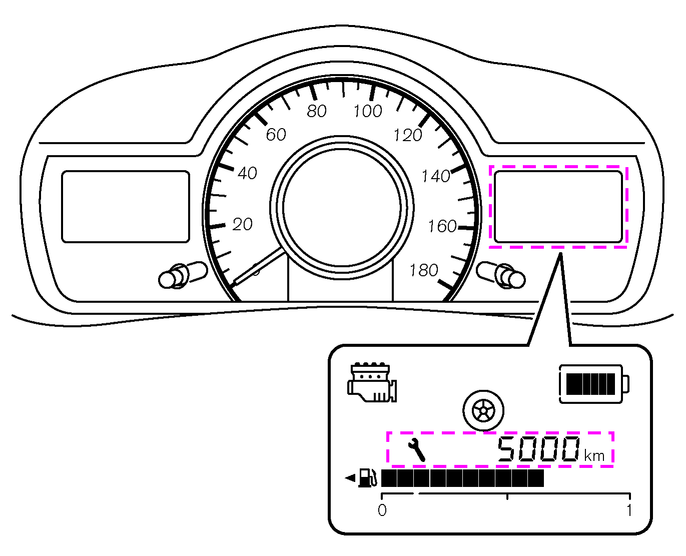 メンテナンス設定スイッチを押して距離を設定しているときは、スイッチを1回押すたびに1,000km延長されます。交換距離は0~30,000kmまでの範囲に変更でき、30,000kmの次にメンテナンス設定スイッチを押すと再び0kmに戻ります。