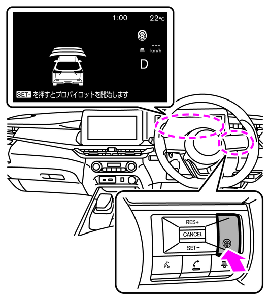 ・スイッチを押したときの速度が設定速度になり、プロパイロットの制御が開始します。
