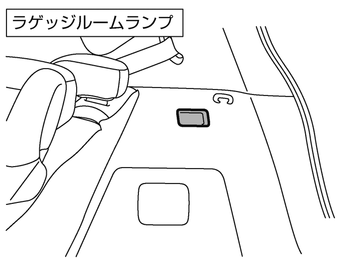 ラゲッジルームランプはラゲッジルームの右側にあります。