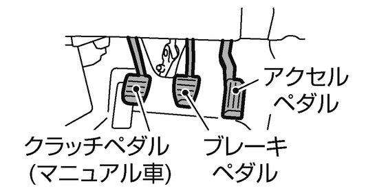 ペダルの踏み間違いは思わぬ事故につながります。右足でアクセルペダルとブレーキペダルを交互に踏み、その位置を確実に覚えてください。