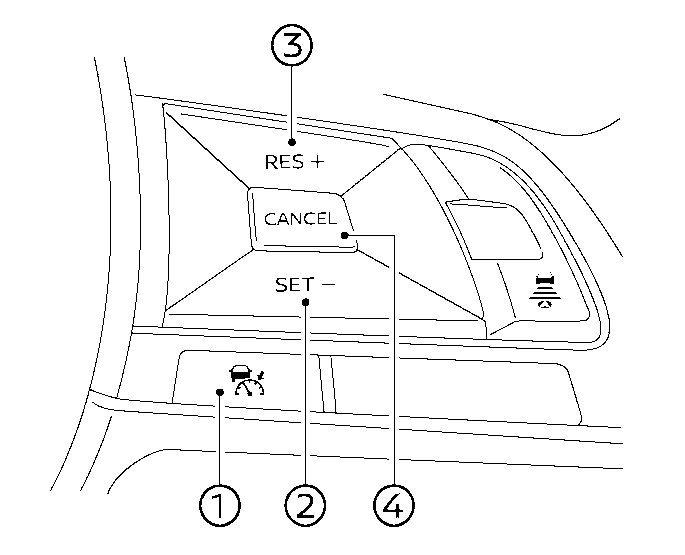 インテリジェント クルーズコントロール警告灯がオレンジ色に点灯したときは、安全な場所に停車して、電源ポジションをOFFにし、エンジンを再始動してから再度定速制御機能をセットしてください。エンジン再始動後もセットできない、またはインテリジェント クルーズコントロール警告灯がオレンジ色に点灯し続けるときはシステムの異常が考えられます。通常走行に支障はありませんが、日産販売会社で点検を受けてください。