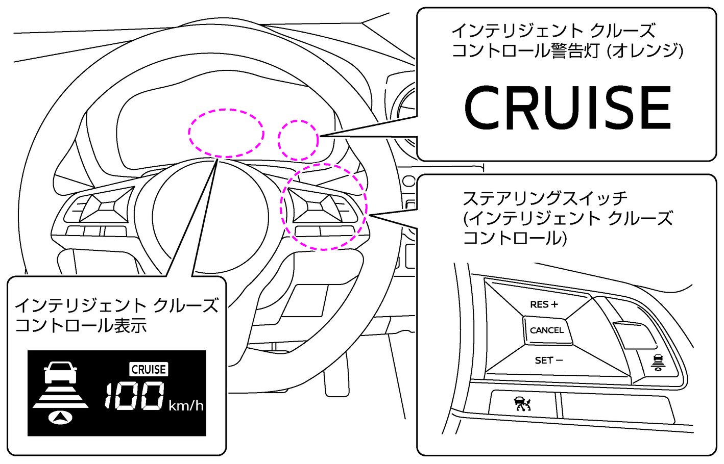 インテリジェント クルーズコントロールは高速道路や自動車専用道路でご使用ください。