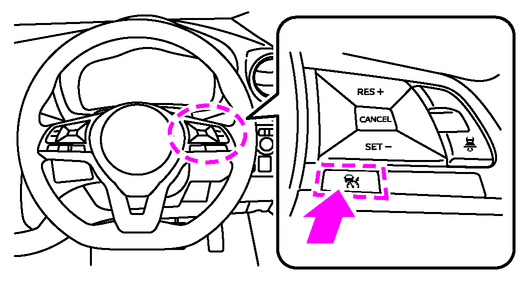 をOFFにしてください。間違ってスイッチを押してしまった場合、定速制御機能がセットされてしまい思わぬ事故につながるおそれがあります。