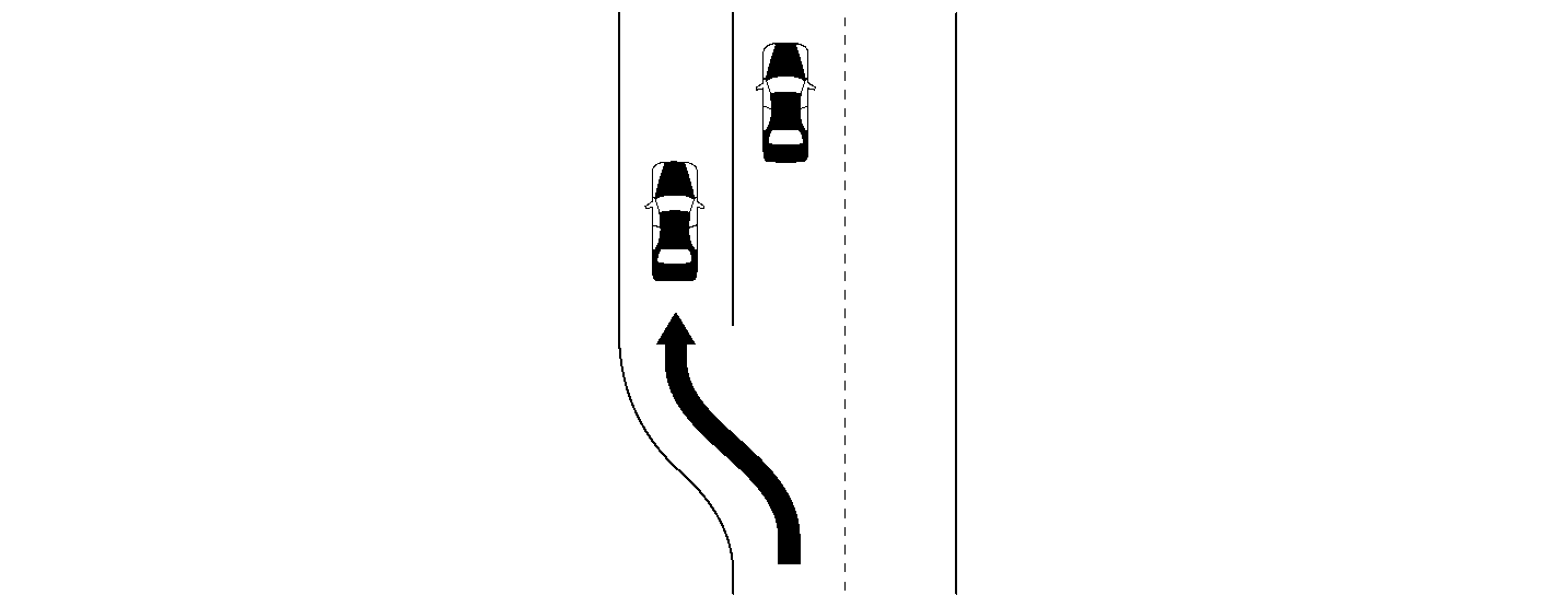 高速道路などで、インターチェンジ、サービスエリア、パーキングエリアなどに進入する(本線から出る)とき本線上でインテリジェント クルーズコントロールによりセット車速よりも遅い車速で走行する先行車に追従走行している場合には、自車または先行車の車線変更などで、自車線上に先行車を検出しなくなることによりセット車速まで自動的に加速するため、思わぬ事故につながるおそれがあります。