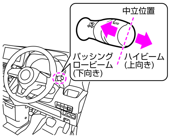 ロービームに戻したいときは、ライトスイッチを車両後方に引きます。