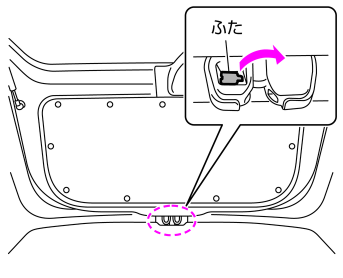 バックドアの車室内側にあるロック機構のふたを開けます。