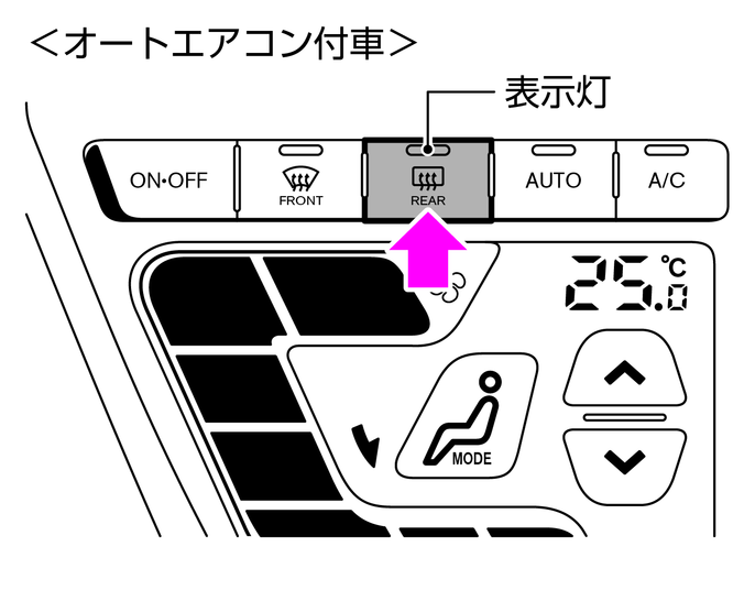 (リヤウインドーデフォッガースイッチの表示灯が点灯)