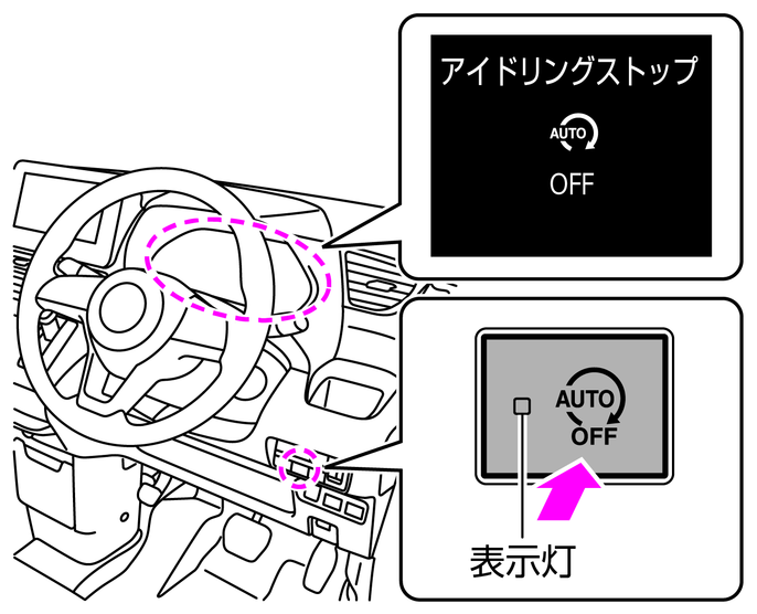 アイドリングストップOFFスイッチを押すと、アイドリングストップの作動が停止します。