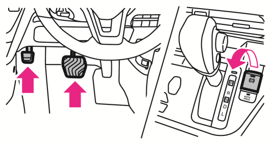 停車するときは、セレクトレバーはDまたはLのままで、ブレーキペダルをしっかりと踏みます。