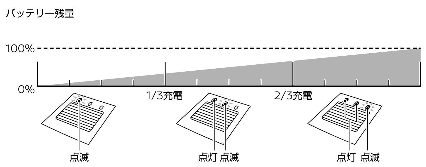 充電が完了すると、すべてのインジケーターが約5分間点灯します。 |