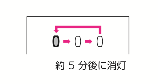 タイマー充電を設定した状態で、充電ケーブルを接続すると、運転席側から順に点灯を繰り返します。(約5分後に消灯) |