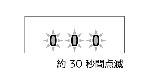 充電コネクタが車両に正しく接続されていないときは、すべてのインジケーターが約30秒間点滅します。この状態になったときは、充電が行われません。充電コネクタを正しく接続し直してください。 |