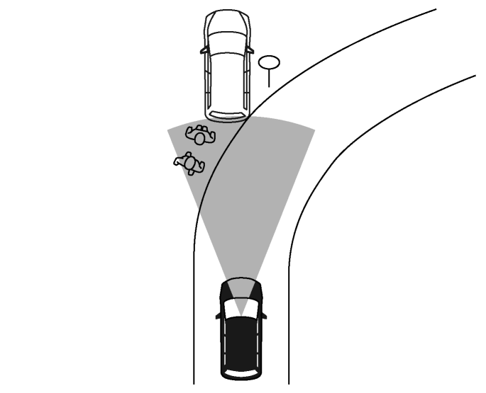 道路形状(カーブ路、カーブの出入り口、ワインディング道、車線規制や工事中など)によっては、一時的に自車正面の対向車にシステムが作動する場合があります。