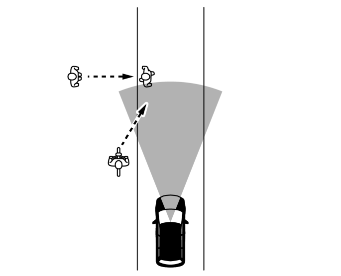 次のような場合は、前方の車両、歩行者、人が乗車している自転車が検知できないことがあります。