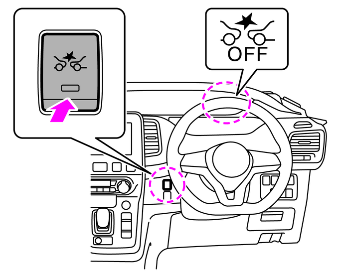 (スイッチの表示灯が消灯し、インテリジェント エマージェンシーブレーキ/踏み間違い衝突防止アシストOFF表示灯が点灯)