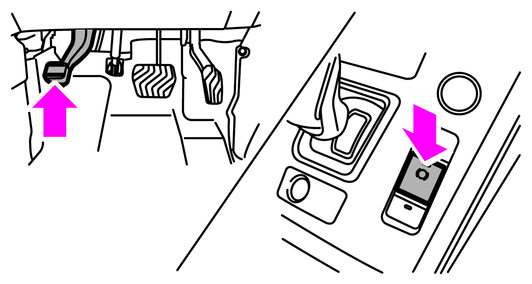 停車中、シフトポジションがP、N以外に入っているときは、ブレーキペダルをしっかりと踏む。