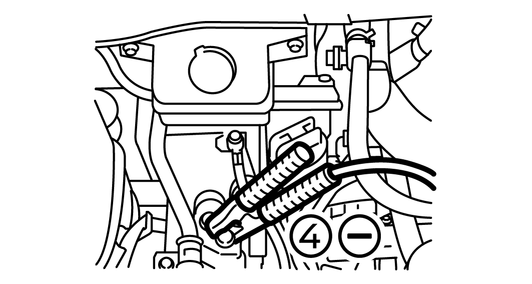 もう1本のブースターケーブル(3)を救援車の12Vバッテリーの⊖端子に接続します。