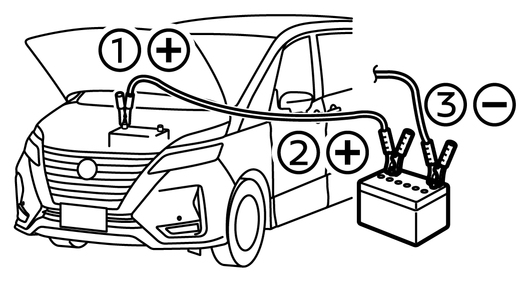 始動できなかった場合は、救援車のエンジンを停止し、パワースイッチをOFFにします。一度運転席ドアを開閉したあと、ナビゲーション、オーディオ、ドアロックなどすべての操作を行わずドアを閉じた状態のまま3分以上待機します。再度救援車のエンジンを始動し、エンジン回転数を少し高めにします。自車のe-POWERシステムを始動します。