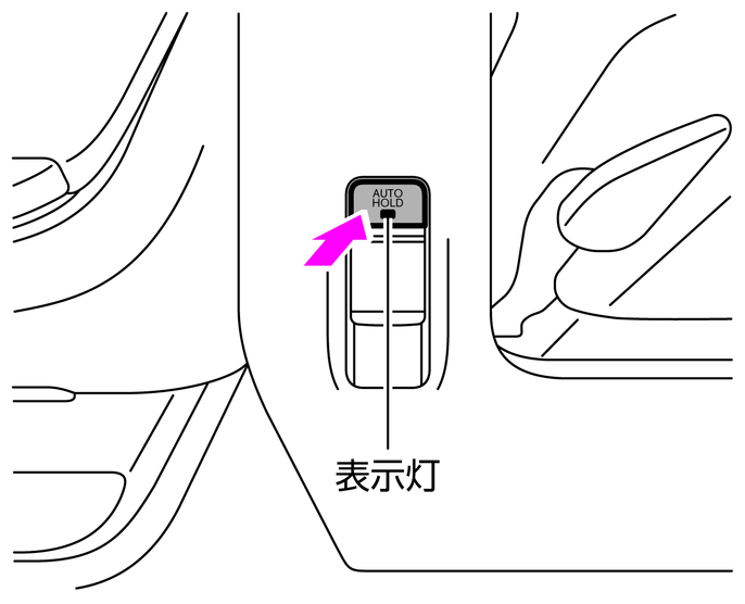 オートブレーキホールド機能がONのとき、オートブレーキホールドスイッチを押すと、オートブレーキホールドスイッチ表示灯が消灯しオートブレーキホールド機能がOFFになります。
