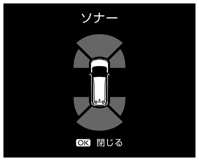 車両が障害物に近づくと、アドバンスドドライブアシストディスプレイのソナー表示色が緑 → 黄(オレンジ) → 赤の順に切り替わり、警報音(ブザー)が鳴ります。