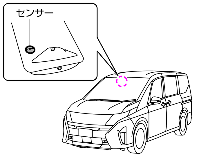 歩行者事故が多く発生している夕暮れ時や雨天でのワイパー使用時にもランプを自動点灯します。