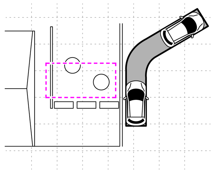 標準的な駐車方法で移動方向、切り返し位置、駐車位置を調整して、目的の駐車位置まで車両を移動します。
