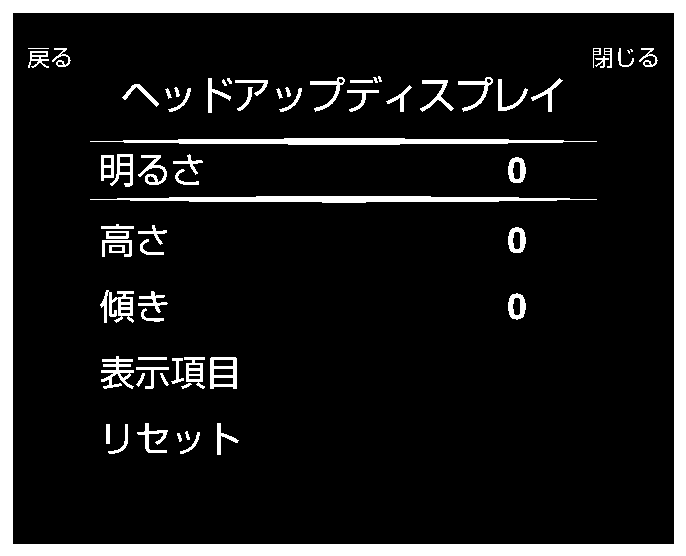 ⇒ヘッドアップディスプレイ⇒明るさ/高さ/傾き