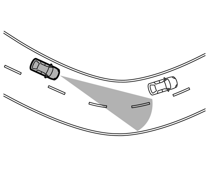 次のような状況では先行車の検出が遅れる、または検出ができないことがあります。運転者は常に前方の状況に注意し、必要に応じてブレーキやハンドルを操作してください。