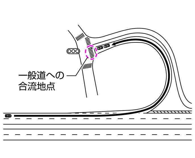 出口・分岐路付近で複数回、車線変更が必要な道路を走行するとき