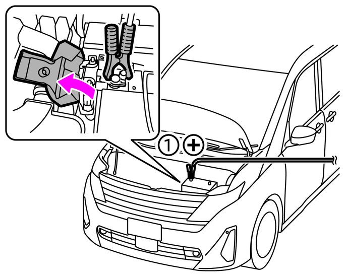 ブースターケーブルのワニグチクリップは、エンジンやモーターに絶対に接続しない。