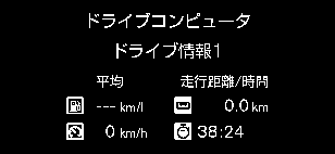 ドライブコンピュータを表示します。ステアリングスイッチのOKスイッチを押すとドライブ情報1、ドライブ情報2、給油後走行情報の順で画面が切り替わります。